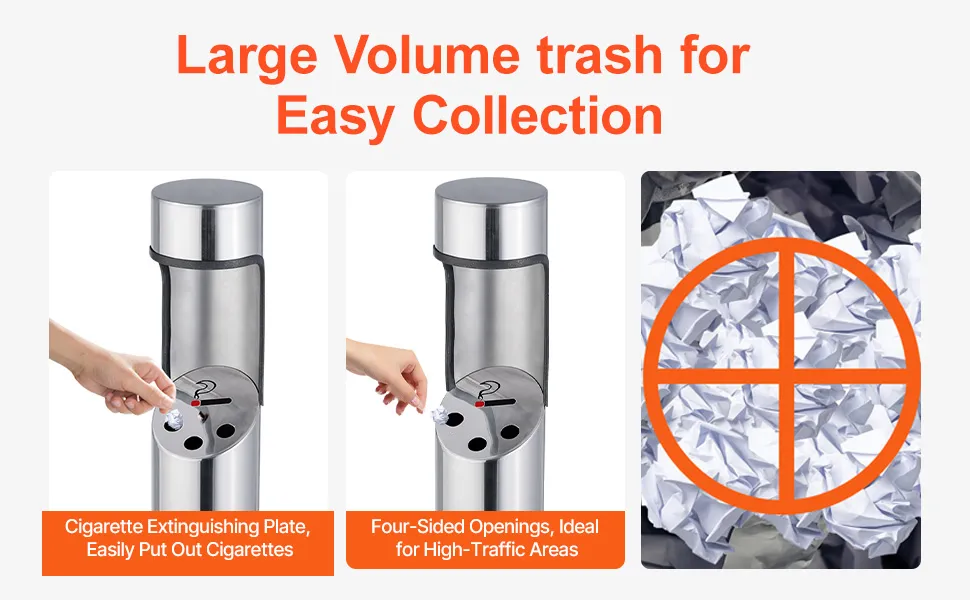Tiene múltiples aberturas para eliminar fácilmente las colillas de cigarrillos y garantiza que no queden colillas ni cenizas. Esto mantiene el entorno limpio, higiénico y atractivo.
