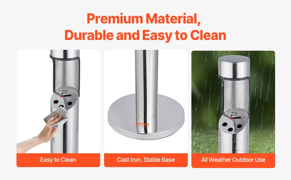 La base de hierro fundido proporciona estabilidad, evita que se vuelque y hace que este cenicero de pie para exteriores sea seguro para uso en exteriores a largo plazo.