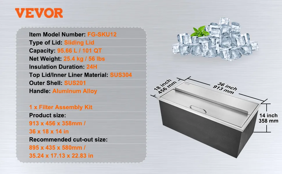 La instalación es sencilla con la hielera empotrable VEVOR. Incluye un tubo de desagüe y un tapón de desagüe. Estas características hacen que la instalación sea rápida y sencilla. Conecte el desagüe a su sistema de plomería para un drenaje automático. Esto elimina la necesidad de un drenaje manual. Puede instalar la hielera en cualquier encimera. Los herrajes incluidos hacen que el proceso sea sencillo. Incluso si no es un experto, puede instalarla fácilmente. Disfrute de la comodidad de una instalación sin complicaciones.