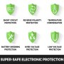 Protección contra sobretensión / baja tensión, protección de temperatura, protección de conexión inversa, protección contra cortocircuitos para su funcionamiento seguro y estable.