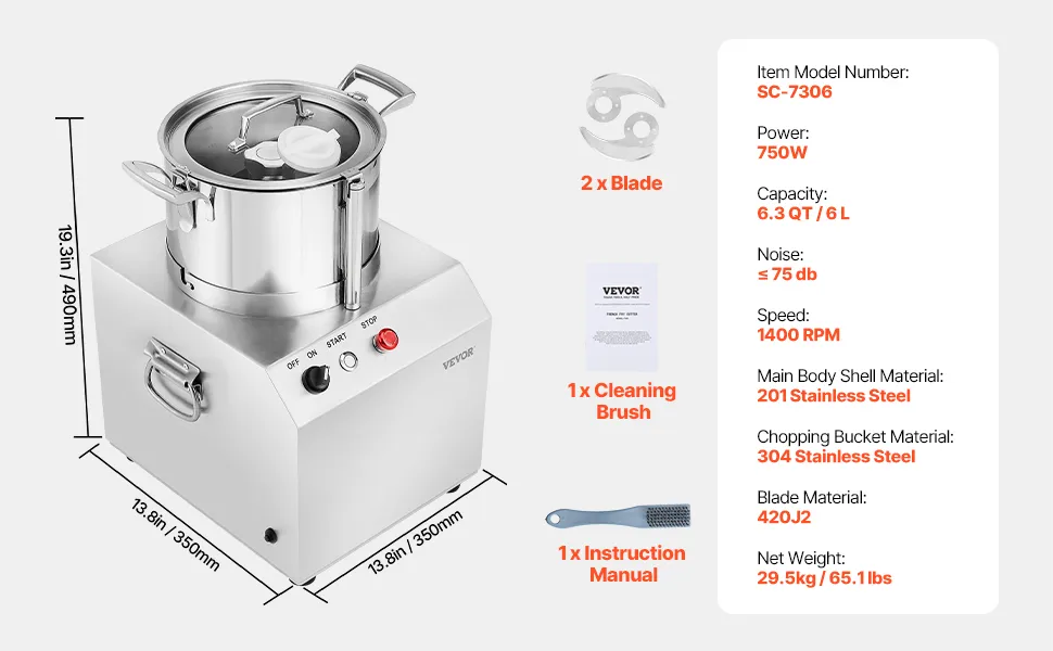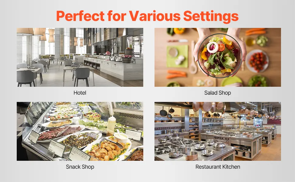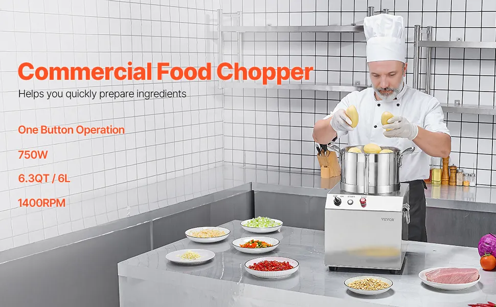 Amplia aplicación: Compacto y elegante, este procesador de alimentos y picadora se adapta fácilmente a cualquier espacio de cocina, lo que lo hace ideal para usar en hoteles, bares de ensaladas, tiendas de bocadillos y cocinas de restaurantes.