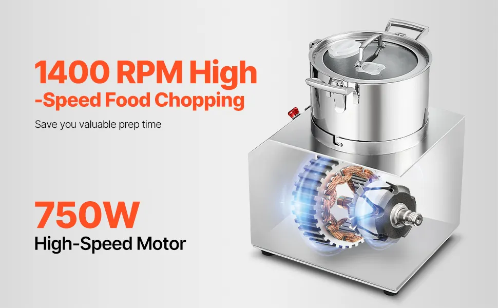 Con nuestras cuchillas curvas en forma de S, resistentes y afiladas, y una velocidad de rotación promedio de 1400 r/min, puede picar rápidamente sus ingredientes, lo que le permitirá ahorrar un valioso tiempo de preparación.