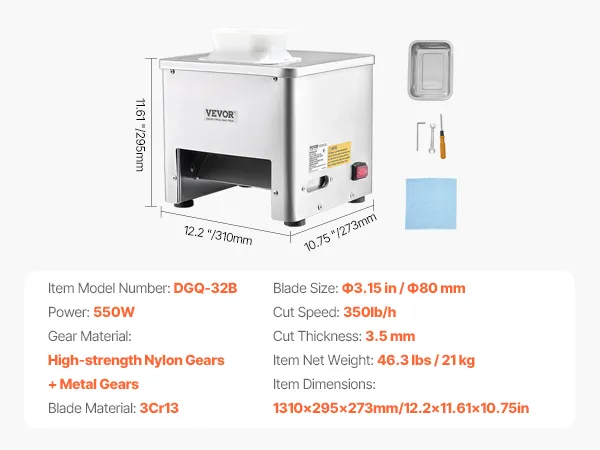 VEVOR Cortadora de Carne de 550 W 159 kg/h, Acero Inoxidable, Grosor de 3,5 mm, Cortadora de Alimentos Eléctrica para Cocina Doméstica, Restaurante, Supermercado, 360 x 345 x 418 mm, Plata