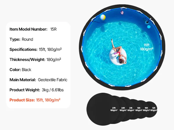 Almohadilla de revestimiento de piscina gruesa: Hecha de material de alta resistencia, esta almohadilla de revestimiento de piscina previene eficazmente daños causados por objetos afilados como rocas, raíces de árboles y vidrio, lo que extiende la vida útil de la piscina y reduce los costosos gastos de mantenimiento y reemplazo, lo que le permite disfrutar de la diversión del verano con tranquilidad