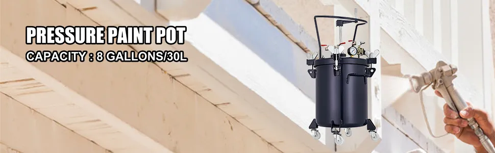La olla de presión de pintura es adecuada para su uso en pinturas comerciales o donde se requiere una gran cantidad de rociado, como camiones comerciales, camionetas, autobuses o acabados industriales y de construcción.