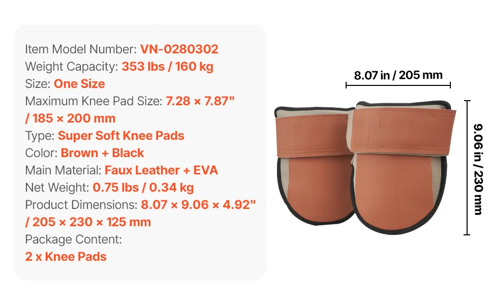 VEVOR Rodilleras para Trabajo Almohadillas de Cuero Duraderas Rodilleras de Trabajo Lavables Fáciles de Poner y Quitar Soporte de Rodillas Extra Grueso para Jardinería, Pisos, Limpieza, Negro y Marrón