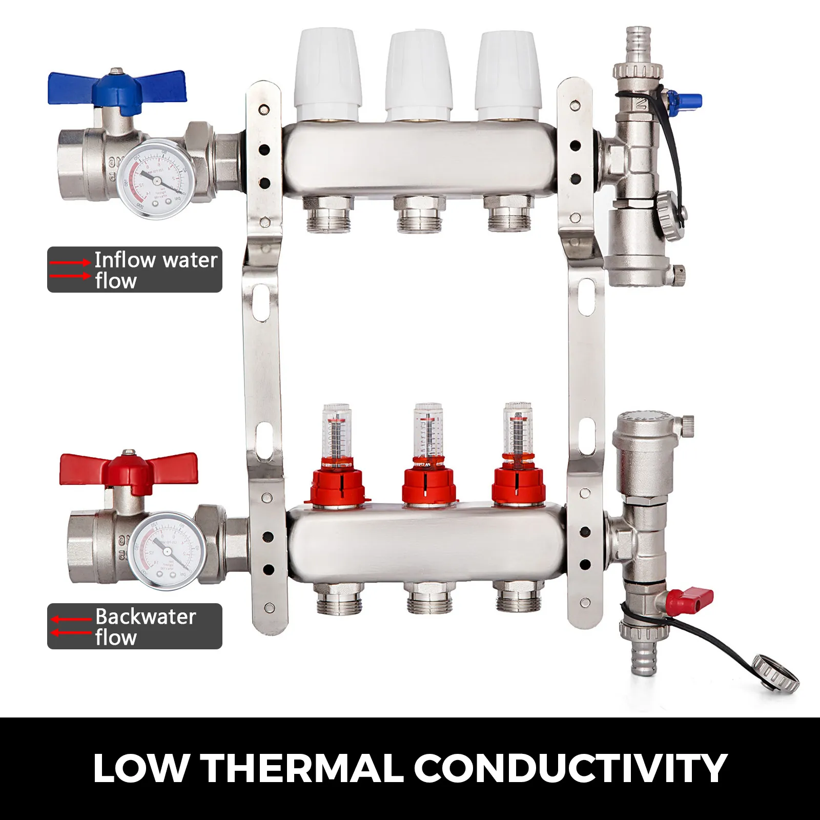 【MATERIAL DE CALIDAD】- El colector PEX está hecho de acero inoxidable 304, es resistente a la corrosión y a la presión. El núcleo de la válvula de cobre puede prolongar la vida útil.