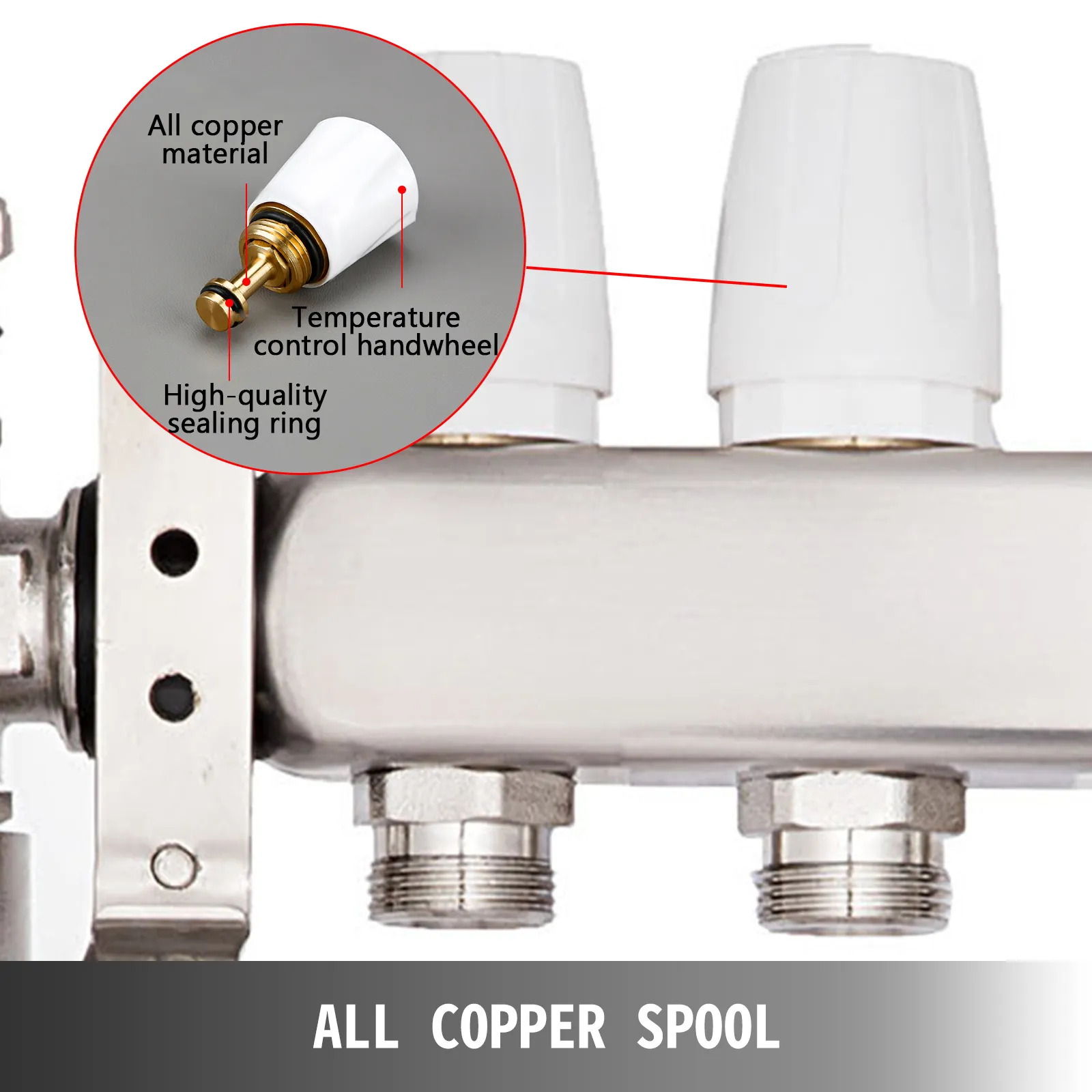 El colector PEX tiene un material de cuerpo de acero inoxidable 304, que es resistente a la corrosión y la presión y tiene una larga vida útil. El colector ha pasado las pruebas de presión y está pre-montado para su instalación. El diseño preciso hace que su sistema hidráulico no tenga obstrucciones, y los detalles de control hacen que valga la pena elegir.