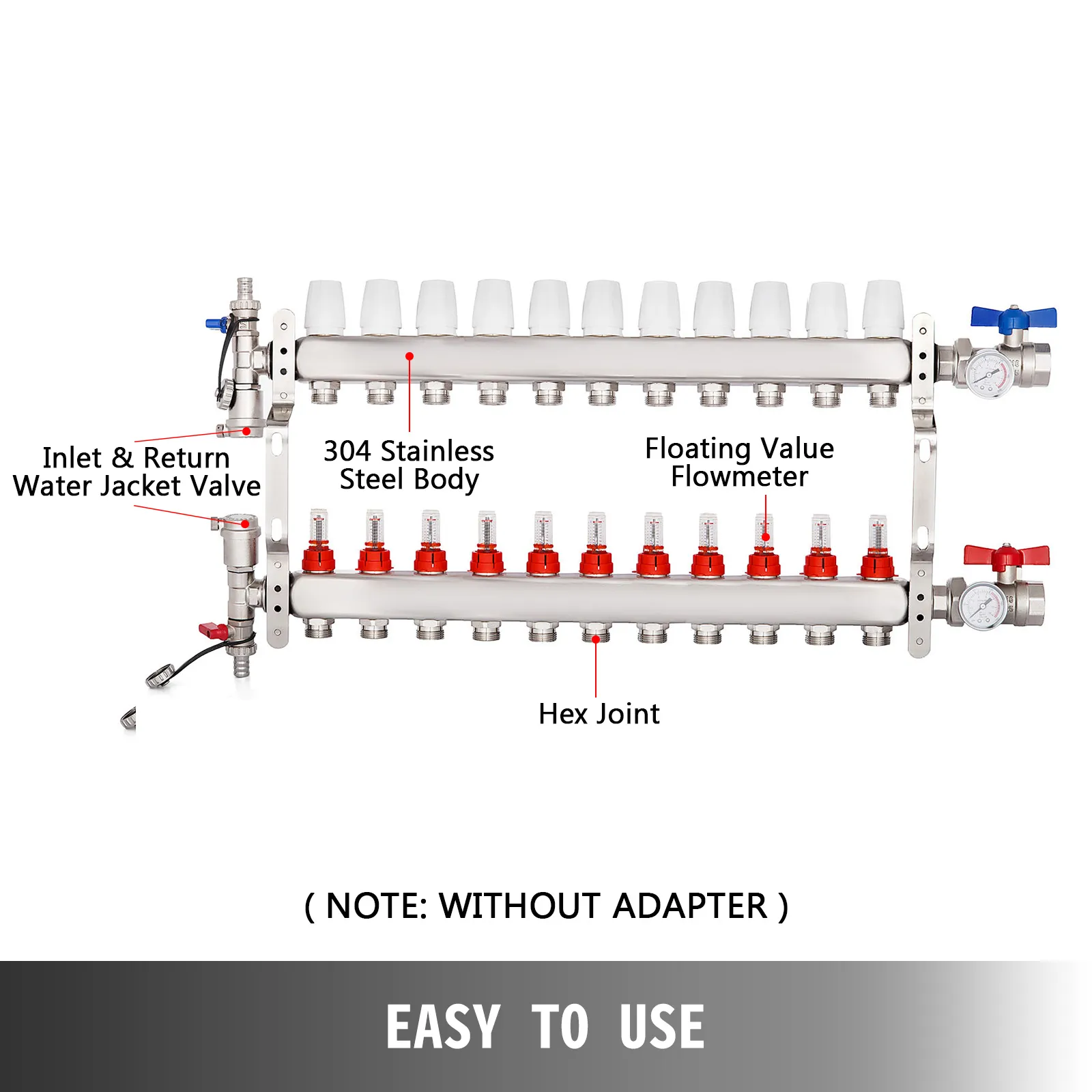 Este kit múltiple radiante adopta material de acero inoxidable 304 de alta densidad. Es resistente a la corrosión y presión y garantiza una vida útil más larga.