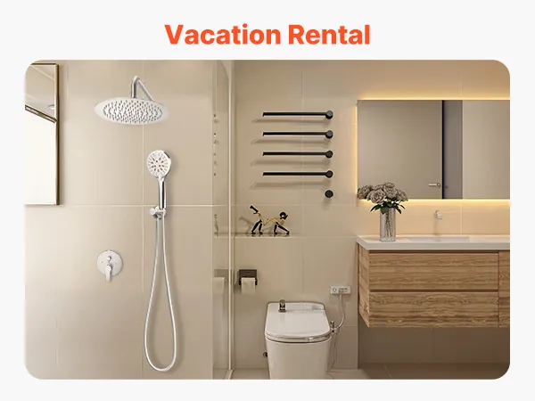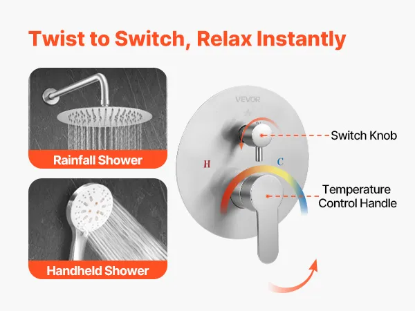 Fácil control de temperatura y protección contra quemaduras: La válvula mezcladora de latón de alta calidad permite ajustes de temperatura rápidos y suaves, evitando quemaduras. El núcleo de cerámica de la válvula garantiza una larga durabilidad, evitando fugas o daños con el tiempo
