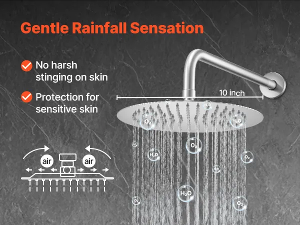 Cobertura de agua uniforme: El brazo de ducha extensible de 40,6 cm aumenta la cobertura, garantizando una lluvia suave y uniforme. El cabezal de ducha giratorio de 360° se adapta a diferentes ángulos, y la conexión G 1/2 pulgada no requiere piezas adicionales para una fácil instalación