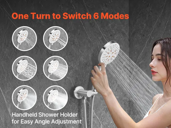 6 modos de ducha de mano: Cambie fácilmente entre los 6 modos de ducha con el dial giratorio. El mango ergonómico garantiza un agarre cómodo. El soporte ajustable y la manguera de acero inoxidable de 1,5 m son ideales para limpiar mascotas, bebés y zonas de difícil acceso