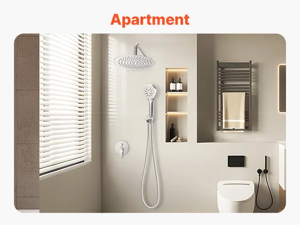 Nuestro sistema de ducha de doble función ofrece opciones de lluvia y de mano, brindando un flujo de agua a alta presión incluso en condiciones de poca agua para una experiencia de ducha refrescante y relajante.