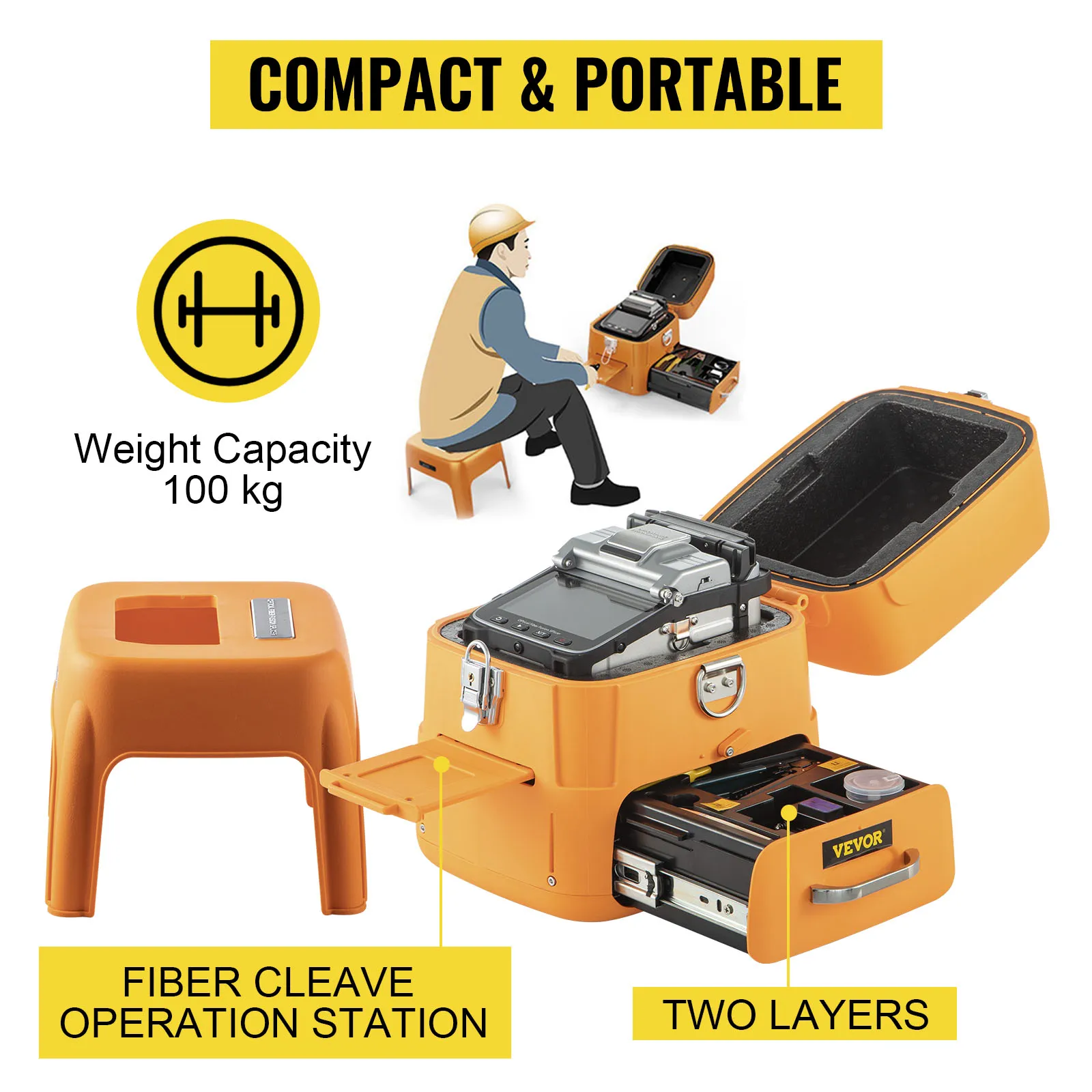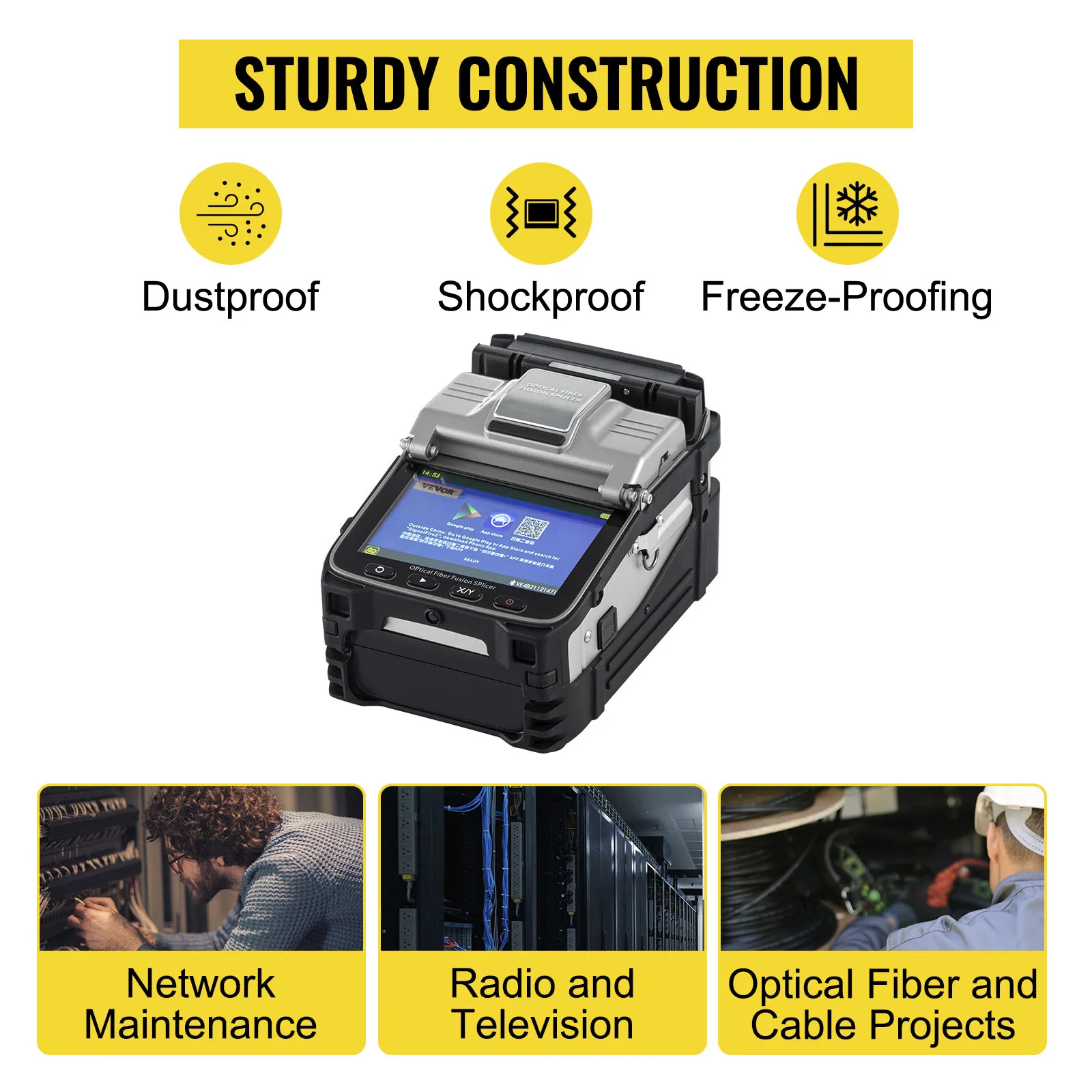 Las estructuras robustas cumplen con los requisitos de diferentes áreas de trabajo, a prueba de polvo, a prueba de golpes y a prueba de congelación. La empalmadora de fibra óptica es especialmente adecuada para proyectos de fibra óptica y cable, investigación científica de mantenimiento y enseñanza en telecomunicaciones.