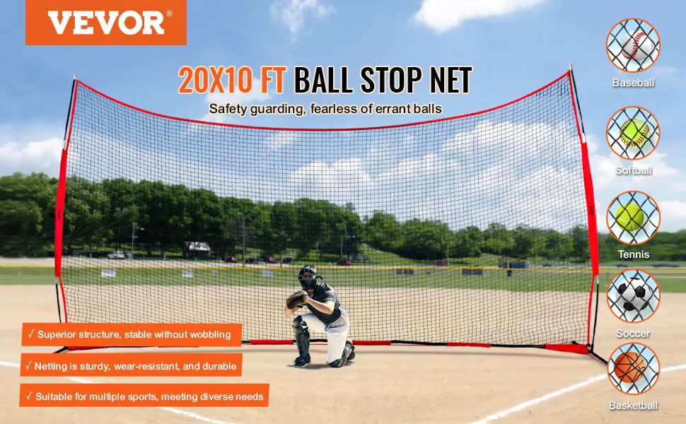 La red de protección de barricada VEVOR ofrece un uso versátil para varios deportes. Es ideal para múltiples deportes como béisbol, sóftbol, lacrosse, fútbol y hockey. Esta red se puede utilizar como protección, divisor o objetivo de golpeo. Su gran tamaño de 20 x 10 pies proporciona una gran flexibilidad para diferentes ejercicios y prácticas para diversas necesidades de entrenamiento. Esta red se destaca tanto en prácticas individuales como en equipo. Puede usarla para ejercicios de bateo, lanzamiento o fildeo, o puede utilizarla para mejorar su conjunto de habilidades. Debido a su diseño multifuncional, esta red la hace increíblemente útil para mejorar sus habilidades deportivas. Esta versatilidad significa que no necesita equipo de entrenamiento deportivo adicional. Puede adaptarla fácilmente a diferentes escenarios deportivos.