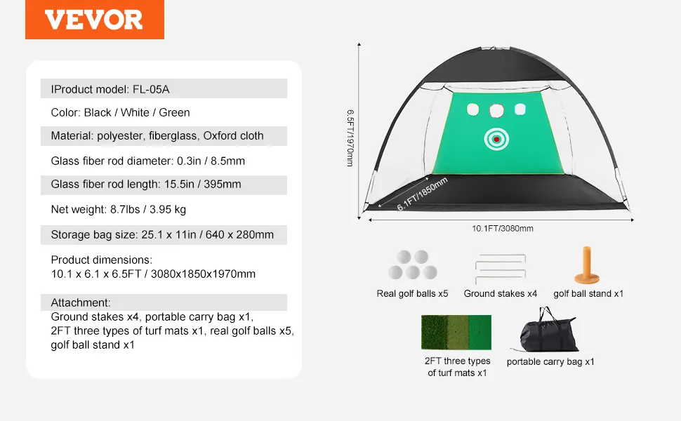Tanto si eres nuevo en el golf como si eres un experto, la red de práctica de golf VEVOR puede soportar tus sesiones de práctica. Su estabilidad y resistencia la convierten en una gran inversión para cualquier golfista.