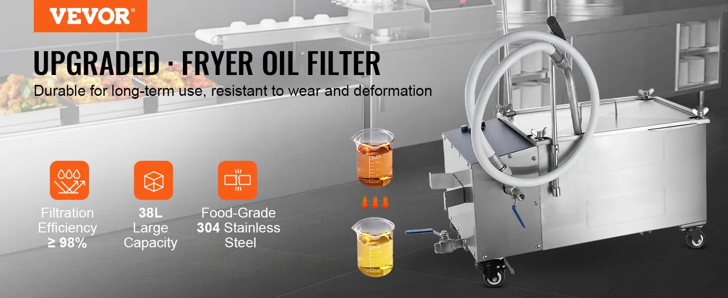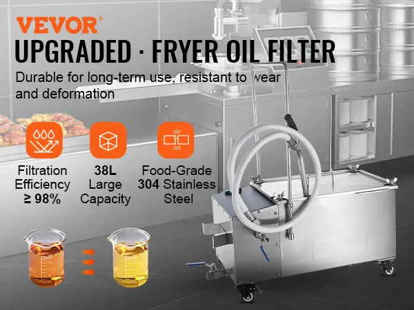 Experimente el siguiente nivel de filtración de aceite con nuestro filtro de freidora móvil de VEVOR. ¡Hemos reforzado el filtro y el motor para brindarle una filtración de aceite aún mejor y una experiencia general aún mejor!