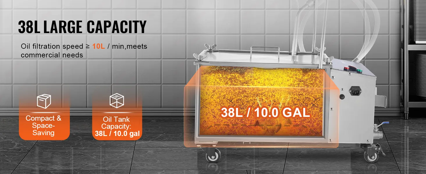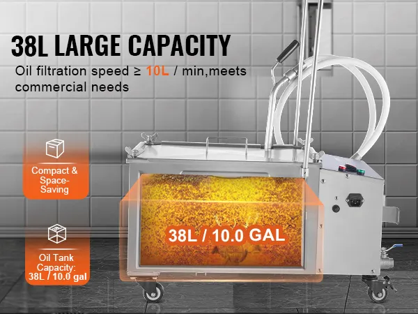 VEVOR Filtro de freidora móvil capacidad del tanque de aceite de 38L sistema de filtración de aceite con velocidad de filtración de aceite de 10 L/min sistema de filtro de aceite con ruedas giratorias