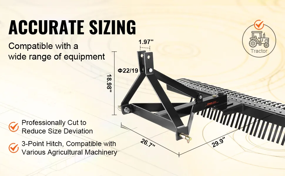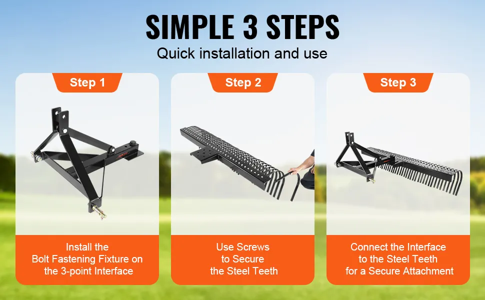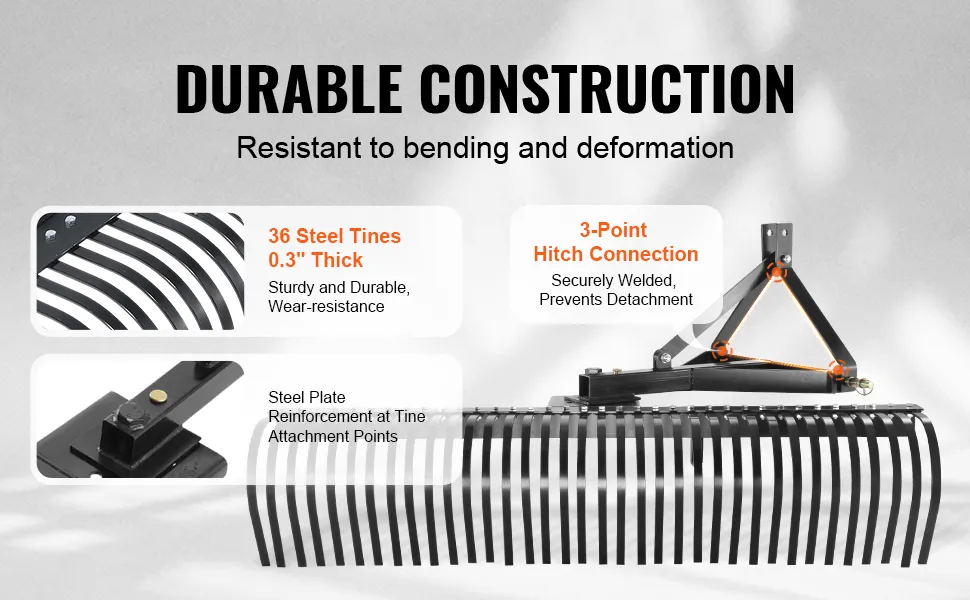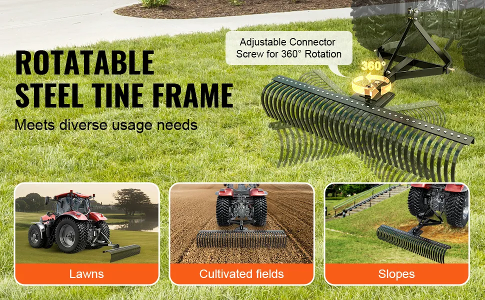 El montaje de la escarificadora remolcable VEVOR es muy sencillo. Puede montarla rápidamente. Es compatible con varios tractores, lo que la hace versátil. Úsela con su maquinaria existente para realizar trabajos de jardinería sin problemas. El diseño de enganche de 3 puntos le permite acoplarla fácilmente. Esto significa que puede cambiar de tarea sin esfuerzo. El diseño de nuestra escarificadora la hace adaptable a diferentes modelos de tractores. Pase menos tiempo en la configuración y más tiempo en el trabajo real porque su compatibilidad mejora su funcionalidad. Por lo tanto, es una gran incorporación a sus herramientas de jardinería.