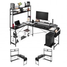VEVOR L-Shaped Computer Desk, 1.5m Reversible Corner Gaming Desk with Drawers & Storage Shelves, Modern Stylish PC Table Sturdy Work Workstation for Home Office - Easy to Assembly