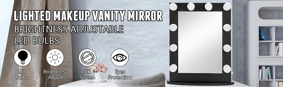 Este espejo de vanidad iluminado está equipado con doce bombillas LED alrededor del borde del espejo. También le ofreceremos otras dos bombillas para su reemplazo.