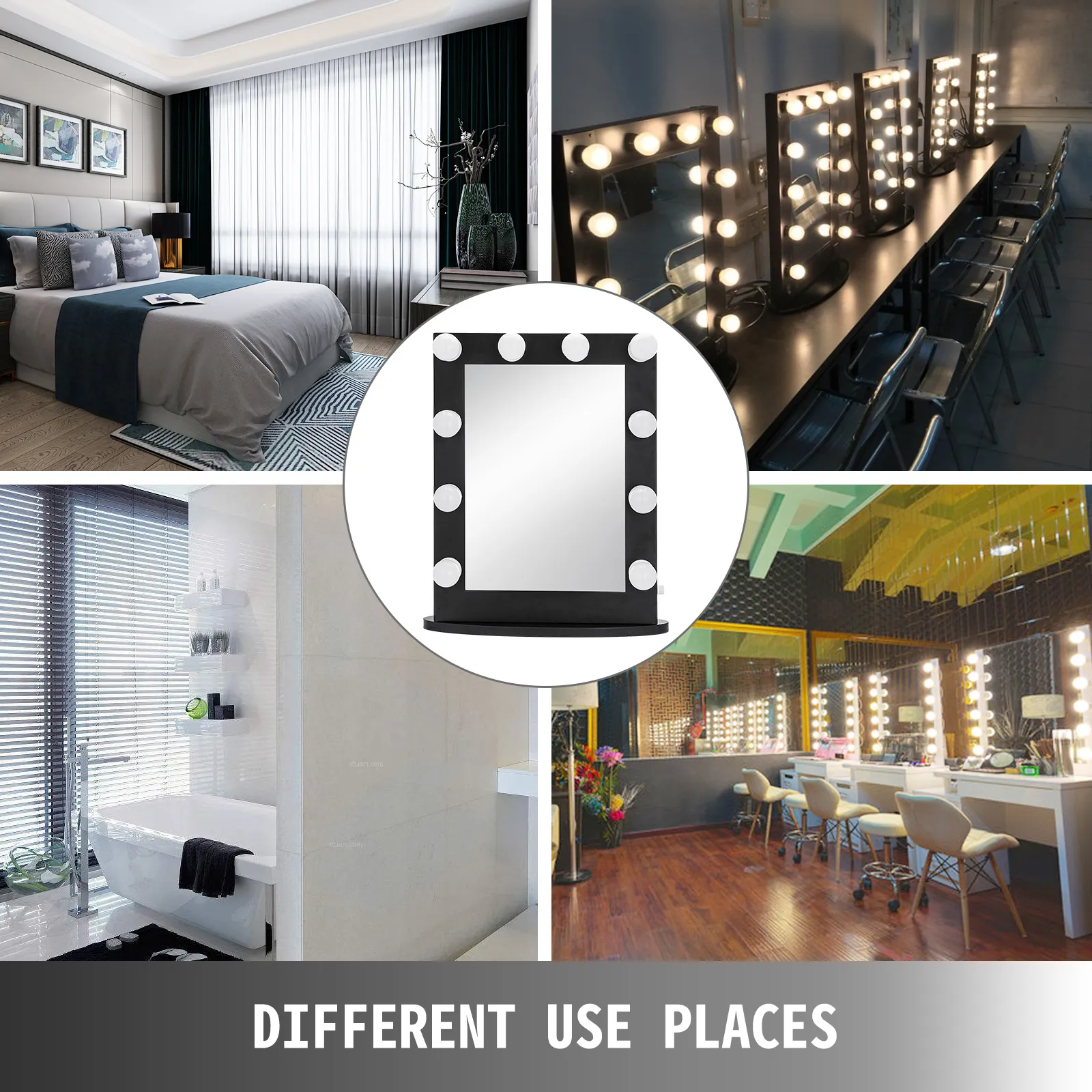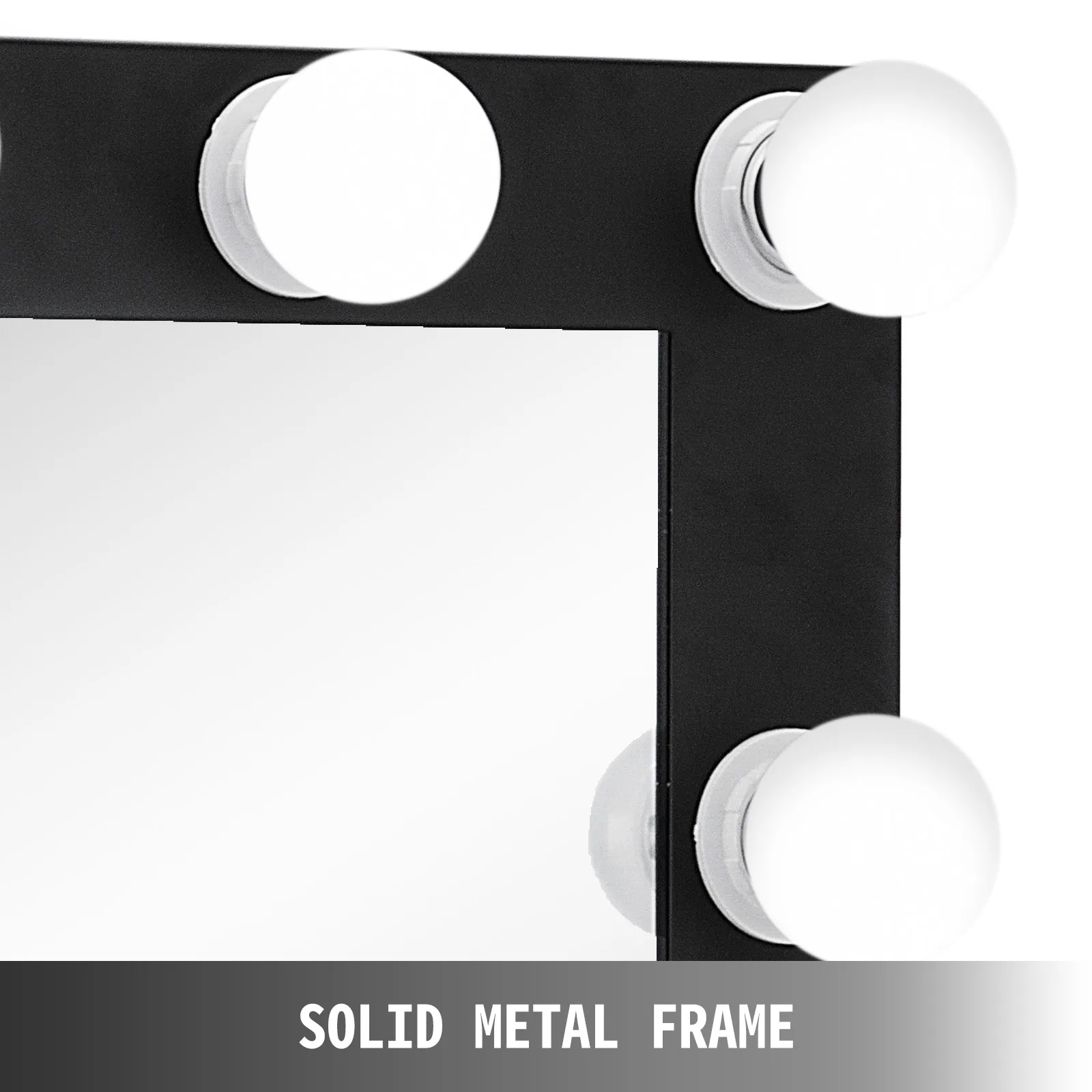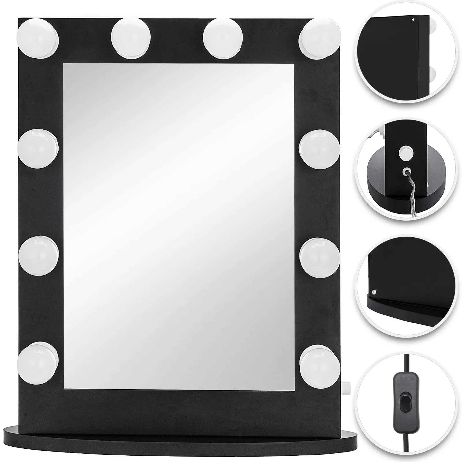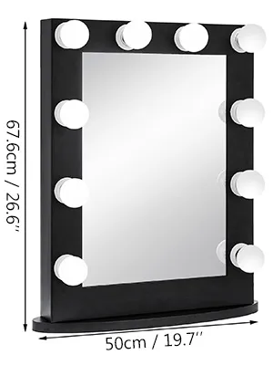 • 【MATERIAL DE ALTA CALIDAD】- Color: negro; material: hierro + vidrio; tamaño del producto: 50 x 67,6 cm. Este espejo de maquillaje de estilo Hollywood está hecho de hierro grueso y está pintado en la superficie, que es estable, robusto y a prueba de herrumbre. El borde liso del espejo no lastima los dedos.