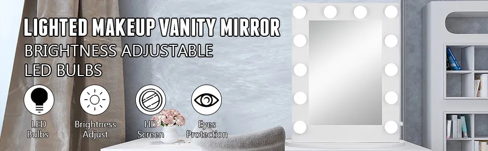 Este espejo de vanidad iluminado está equipado con doce bombillas LED alrededor del borde del espejo. También le ofreceremos otras dos bombillas para su reemplazo.