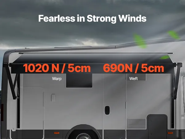 Ofrecemos un toldo duradero para vehículos recreativos con tela de vinilo de PVC de 4 capas de 18 oz mejorada, diseñada para soportar condiciones climáticas cambiantes. El marco de aleación de aluminio reforzado es resistente a la corrosión.