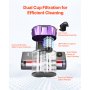 Filtración dual: El filtro HEPA captura partículas diminutas, mientras que el depósito de polvo de gran capacidad de 650 ml separa las partículas de polvo más grandes. El lado izquierdo filtra y el lado derecho recoge el polvo, lo que evita obstrucciones y reduce la necesidad de vaciado frecuente