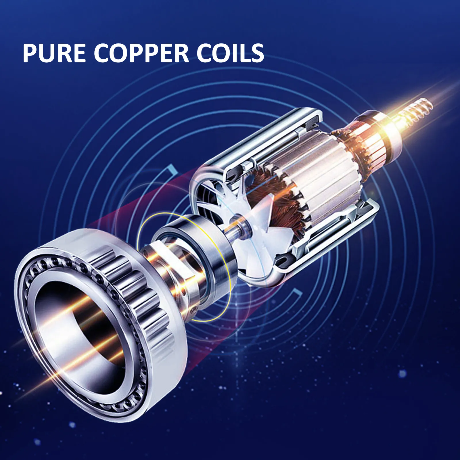 El motor "multi-fase" utiliza una bobina de cobre puro denso para resistir la deformación con una estructura compacta, alta clase de aislamiento, conductividad eléctrica más vital y conductividad térmica más sustancial.