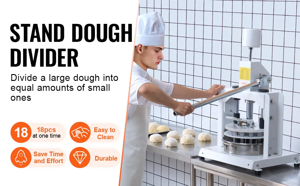 Divide grandes trozos de masa uniformemente en porciones iguales. Gracias a su diseño mecánico, es fácil y cómodo de usar y garantiza pesos de porciones precisos, ideal para la producción de masa en grandes cantidades.