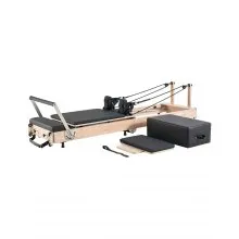 VEVOR Reformer de Pilates Plegable de Madera Máquina de Pilates para Gimnasio Equipo de Pilates Doble Resistencia Resorte y Cuerda Reformador con Caja para Sentarse Hasta 181,4kg, 238 x 68 x 57 cm