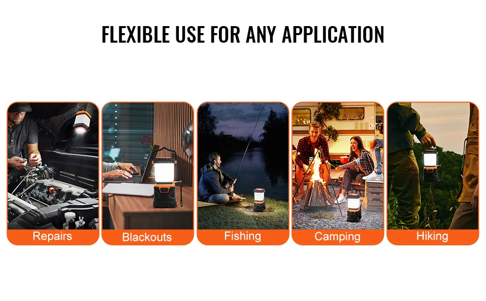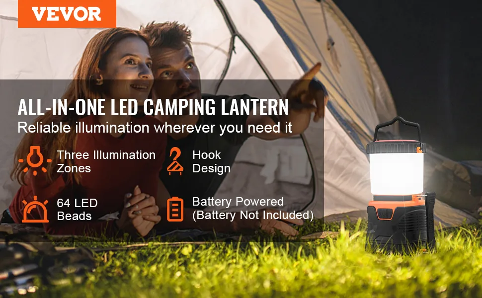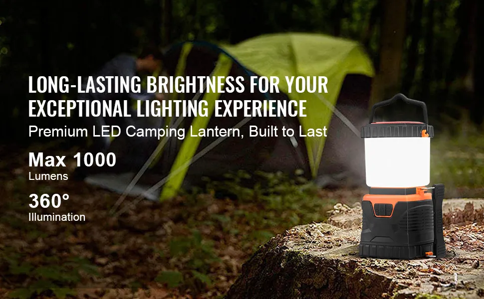 VEVOR Linterna LED Todo en Uno para Acampar de 1000 Lúmenes, Iluminación de 360°, 4 Modos de Iluminación, Luz Alimentada por Batería para Senderismo, Pesca, Cortes de Electricidad y Aventuras