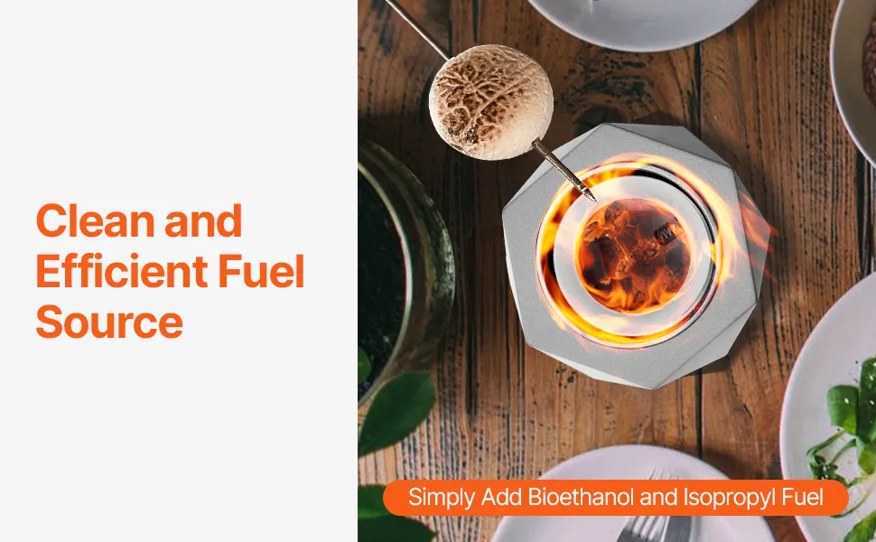 45 a 60 minutos de combustión continua: Con una cámara de combustión de 0,17 L, esta mesa para fogata admite quemaduras duraderas y es compatible con combustibles de bioetanol y alcohol isopropílico, que están fácilmente disponibles en tiendas de conveniencia para mayor comodidad