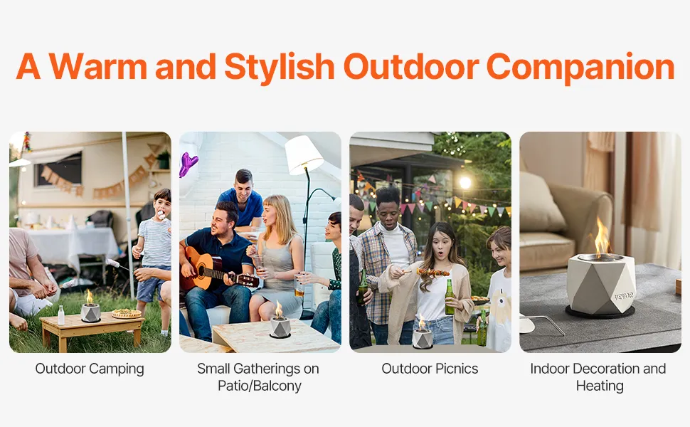 VEVOR Brasero de Mesa para Chimenea, de Hormigón, para Decoración Interiores y Exteriores, Quemador Portátil de Alcohol Isopropílico, para Patio, Balcón, con Extintor, Gris Claro, 125 x 117 x 105 mm