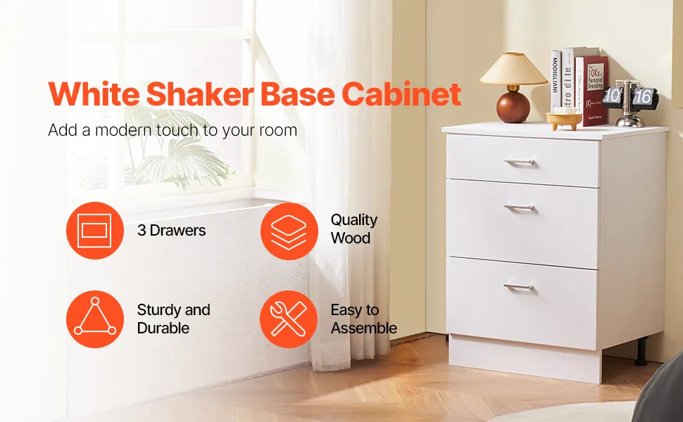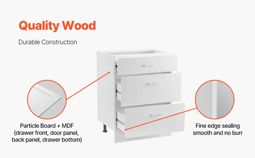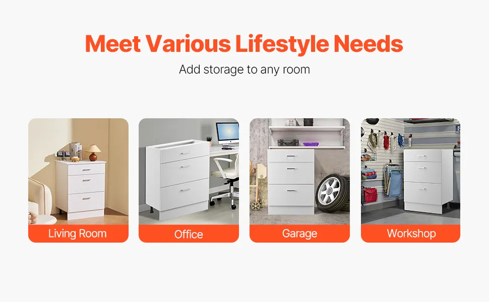VEVOR Gabinete de Piso con 3 Cajones 600 x 475 x 816 mm Armario de Pie sin Ensamblar Gabinete de Suelo Gabinete Listo para Ensamblar Cajón de Cierre Suave para Oficina, Casa, Baño, Cocina, Blanco