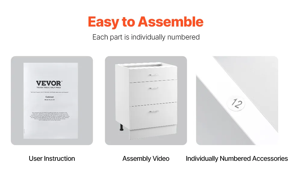 Nuestro armario de almacenamiento listo para ensamblar (RTA) es fácil de ensamblar. Se incluyen todas las piezas necesarias y, con solo unos sencillos pasos, puede ensamblarlo sin necesidad de herramientas especiales ni conocimientos técnicos.