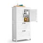VEVOR Bathroom Floor Cabinet, 4-Tier, Wooden Storage Organizer with 2 Doors, 2 Drawers and Adjustable Shelf, Modern Home Furniture Freestanding Cupboard for Kitchen/Living Room/Entryway Use, White VEVOR Bathroom Floor Cabinet, 4-Tier, Wooden Storage Organizer with 2 Doors, 2 Drawers and Adjustable Shelf, Modern Home Furniture Freestanding Cupboard for Kitchen/Living Room/Entryway Use, White