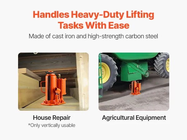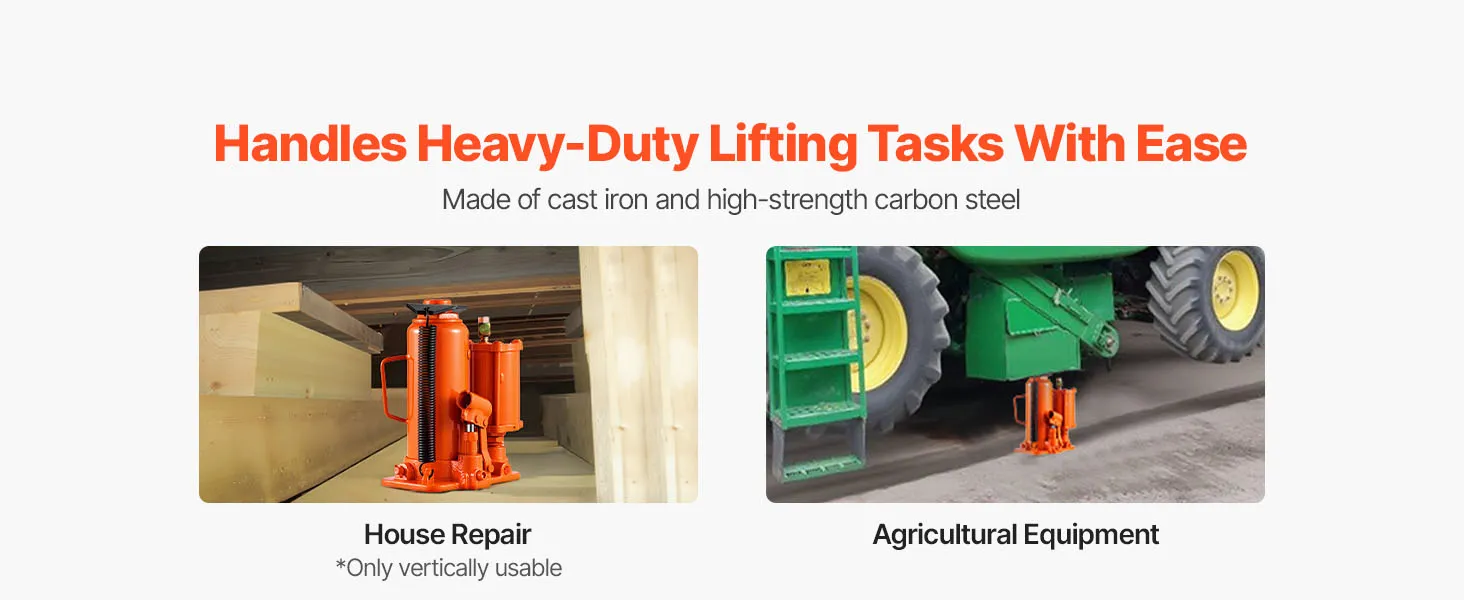 Amplia aplicación: Fabricado con hierro fundido y acero al carbono de alta resistencia, este gato hidráulico soporta maquinaria agrícola y de construcción pesada. Funciona incluso en condiciones de calor o frío extremos: sin congelación del aceite, sin juntas hinchadas, solo un rendimiento fiable