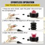 VEVOR pneumatic jack before and after inflation, showing inflation valve details