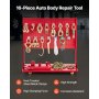 16-piece straightening tool set: Our body frame puller and straightening tool comes with sheet metal clamps and essential tools for body repair. A double-headed clamp ensures a strong, stable grip and safety during straightening.