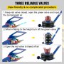Hay 3 válvulas en este gato de triple bolsa de aire: la válvula de entrada de aire, la válvula de salida de aire, la válvula de seguridad, que puede ayudarle a operar el gato de forma segura y rápida.
