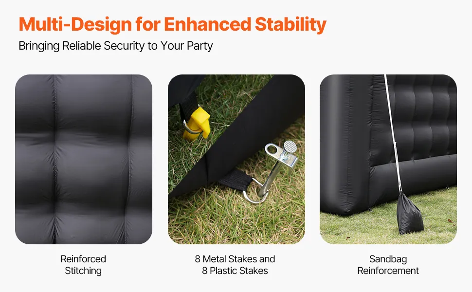 Diseño estable: Cuenta con costuras reforzadas y múltiples estacas de tierra para un anclaje seguro, junto con bolsas de arena con peso para garantizar que la carpa inflable para pub permanezca estable durante el uso en varios entornos al aire libre.