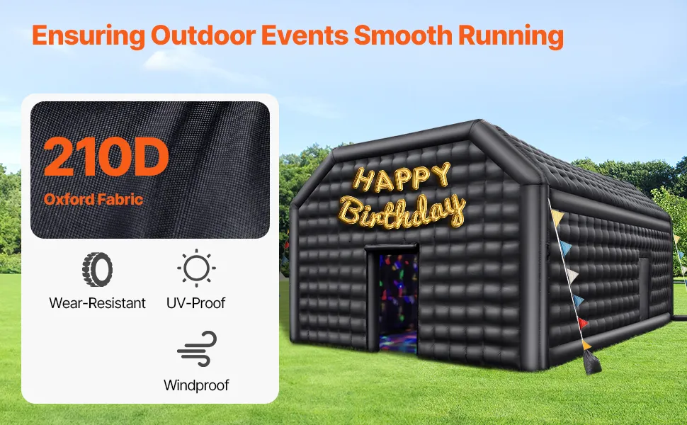Materiales de alta resistencia: Construida con tela Oxford 210D duradera, esta carpa inflable para fiestas es impermeable y a prueba de viento, capaz de soportar cambios climáticos inesperados (lluvia ligera o viento) para garantizar que su evento se desarrolle sin problemas.
