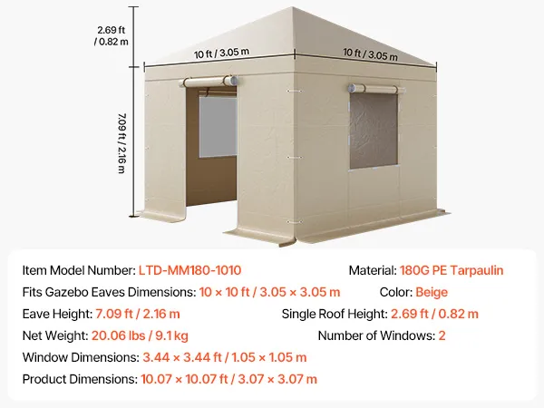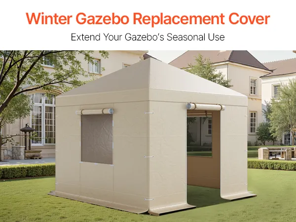 Compatible con cenadores de 3,05 x 3,05 m: Esta cubierta de invierno para cenador está diseñada para cenadores de 3,05 x 3,05 m (cenador no incluido). Cuenta con aleros en los cuatro lados del techo, lo que permite ajustarla a diferentes alturas e inclinaciones para un ajuste seguro y personalizado. Ofrece una protección completa para su cenador