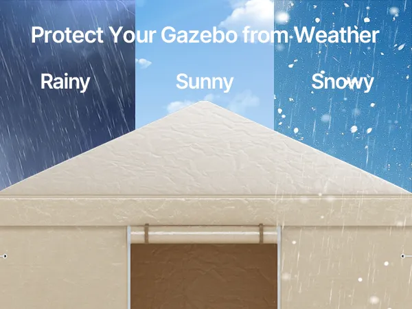 Nuestra cubierta para cenador, con su revestimiento de PE de doble cara, es resistente al agua, al sol y a la nieve. Protege su cenador en temporadas de sol, lluvia y nieve sin decolorarse ni deteriorarse.