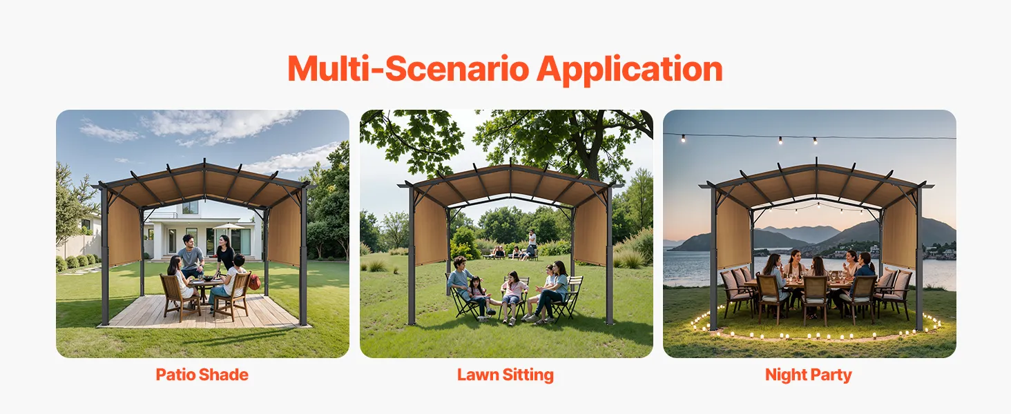 Ya sea que esté creando un área de relajación sombreada en su patio trasero o césped, o esté organizando una fiesta por la noche, esta pérgola independiente es la elección perfecta para cualquier ocasión al aire libre.