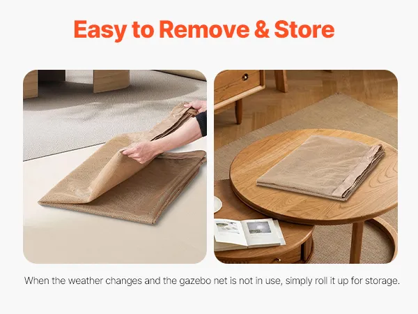 La red para cenador se puede enrollar y guardar cuando no se utiliza, lo que ahorra espacio. Es lavable a máquina, lo que facilita la limpieza de la suciedad o las manchas de aceite y la deja como nueva, lo que le permite ahorrar tiempo y esfuerzo.