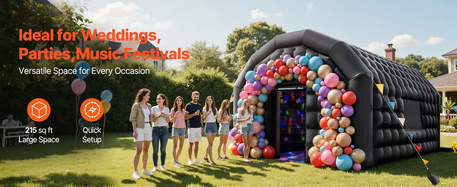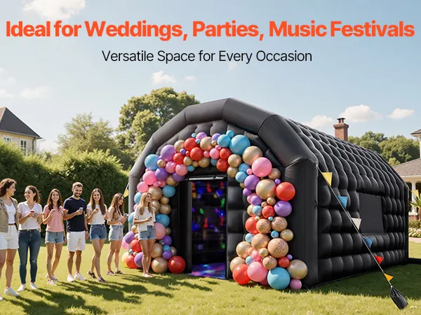 Carpa inflable de discoteca (27 m²) ofrece un amplio espacio para bodas, cumpleaños, Halloween y fiestas épicas. Se monta/desmonta rápido, compatible con iluminación de discoteca, tela Oxford resistente y estabilidad reforzada: compañera de confianza para cualquier celebración.