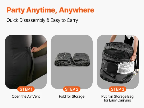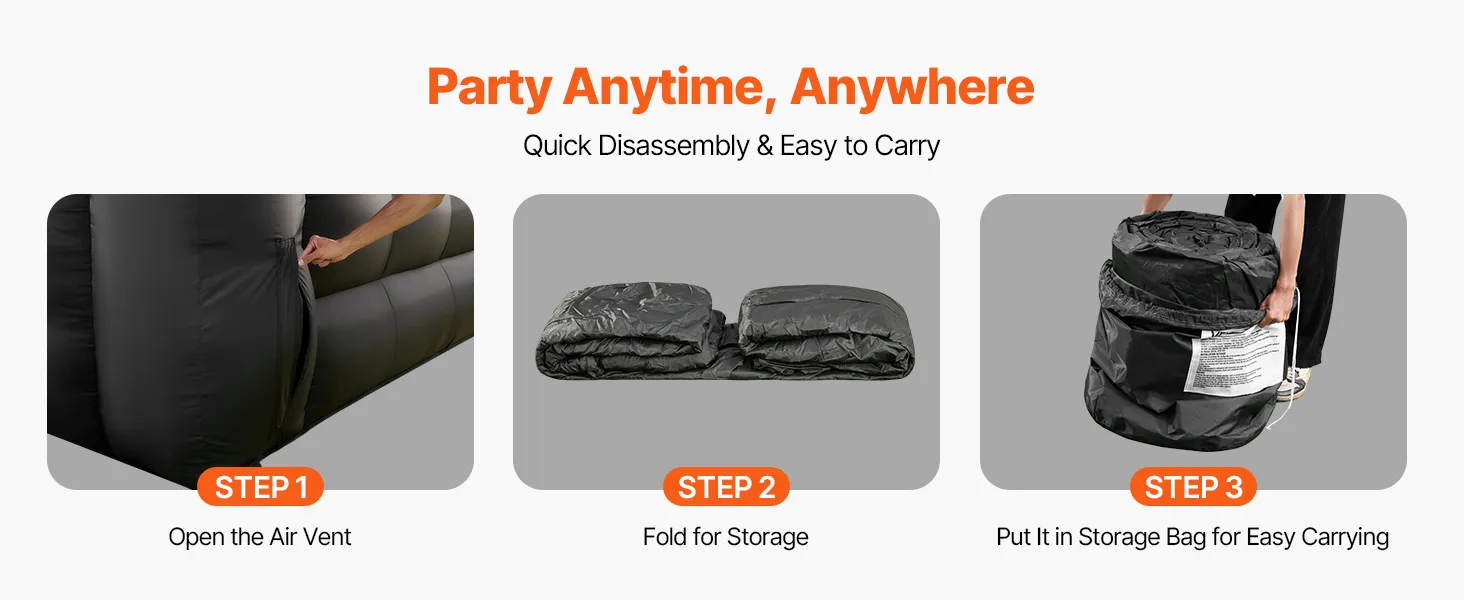 Esta carpa inflable para fiestas se desinfla y pliega rápidamente, y cabe en su bolsa de transporte para transportarla fácilmente; es perfecta para armarla y desarmarla mientras viaja.